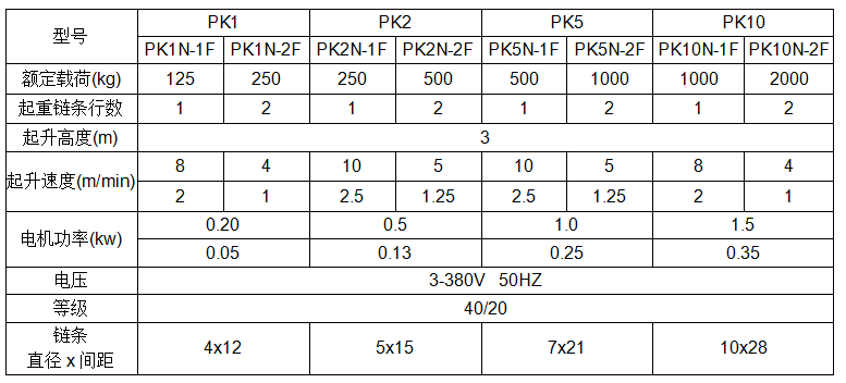 冠航牌PK2N-1F型環鏈電動葫蘆